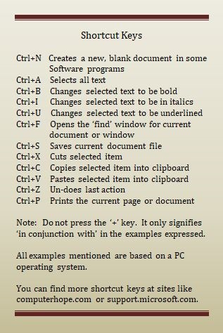 The CTRL (control) key typically sits on the far left of a PC keyboard. It changes the function of another key when both keys are pressed simultaneously. The shortcut list provided isn’t exhaustive, but let’s take a look at a couple of CTRL pairings to get you off to a good start.